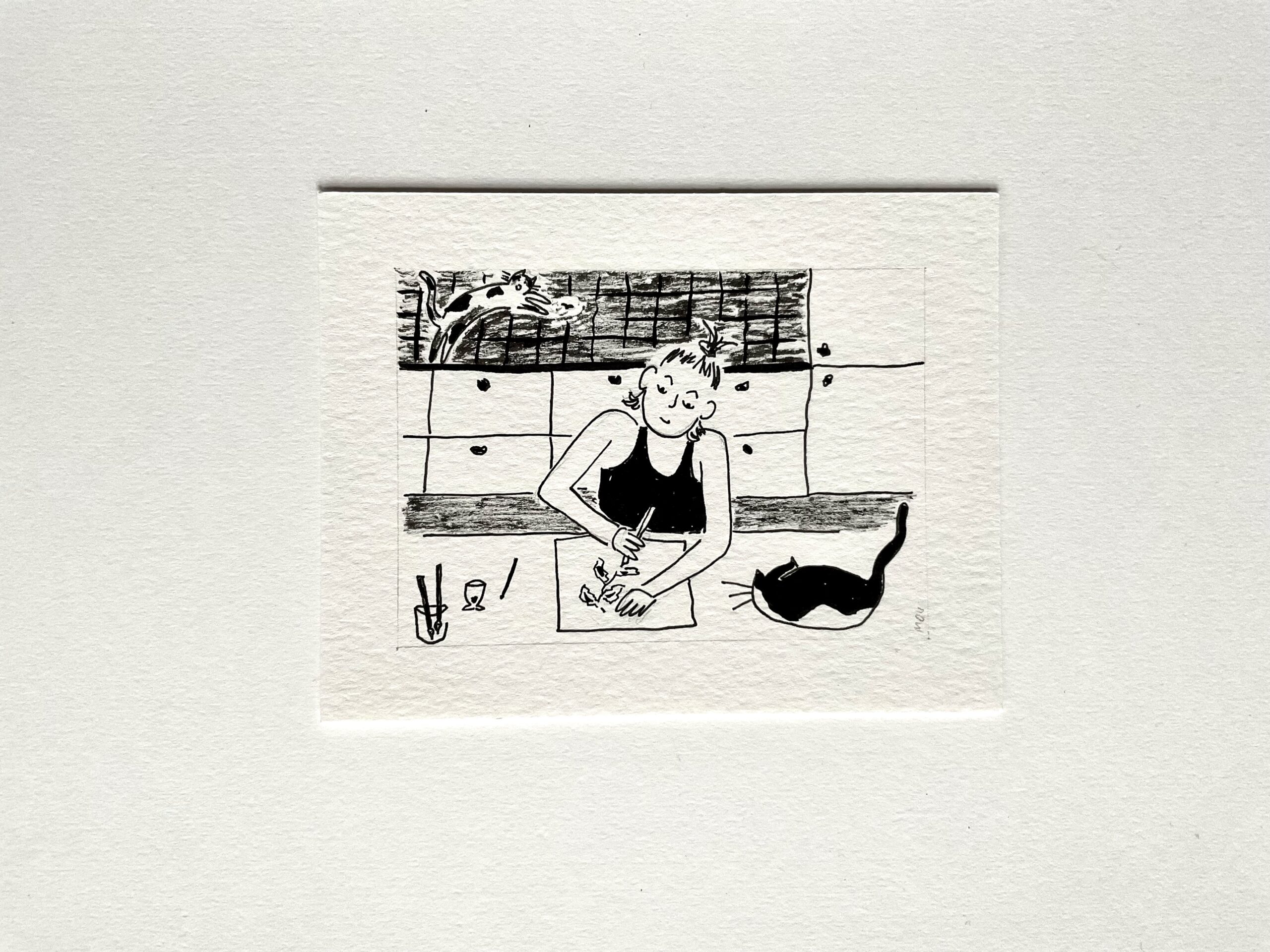 Extrait de la série Quotidien, Encre, Format A6, 2025