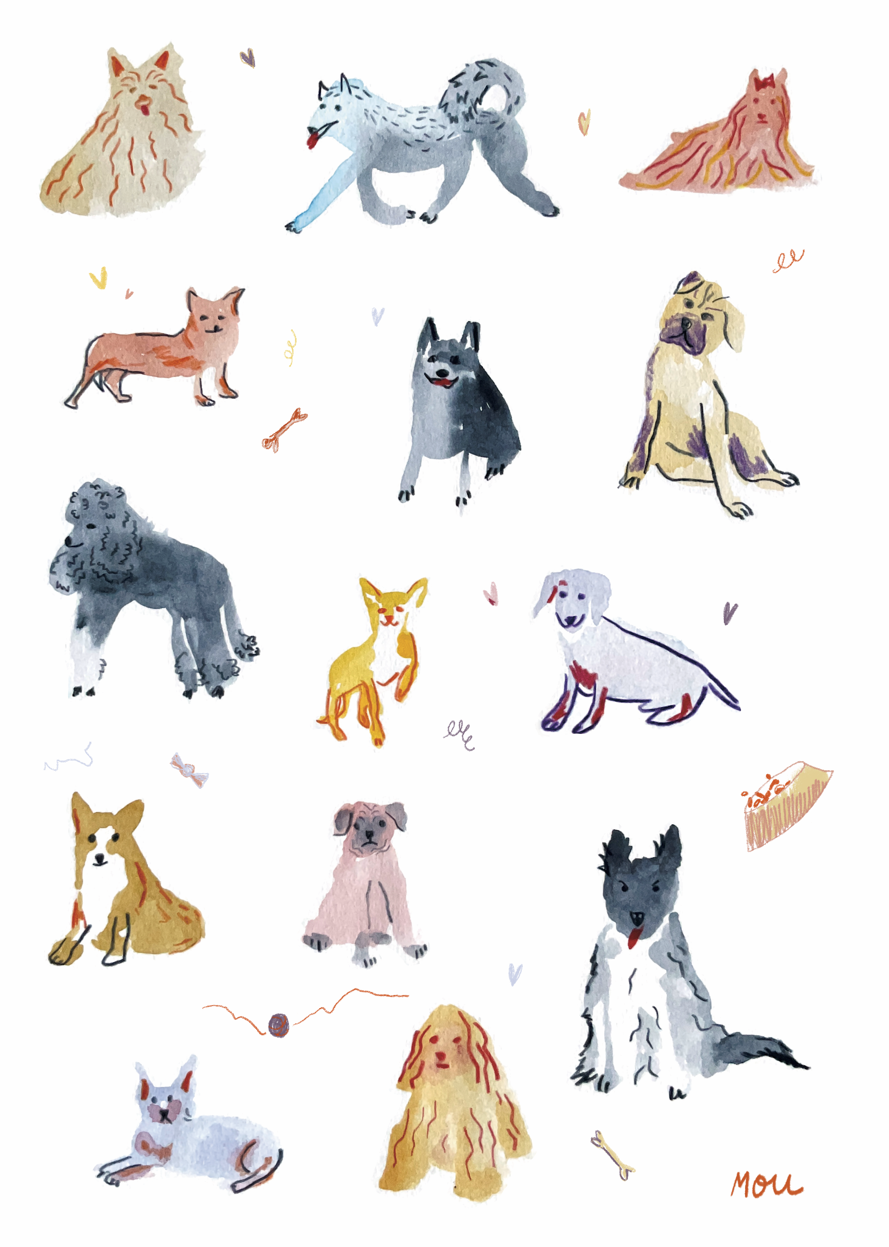 Planche de stickers réalisée à partir de dessins à l'aquerelle et crayons de couleur, format A5, 2025